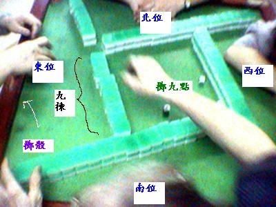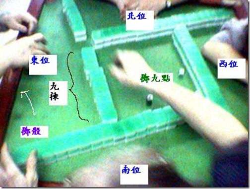 上圖是左手的那家擲骰,擲九點,恰好便是他自己,那他便是東位起莊,而其餘位置如上圖。